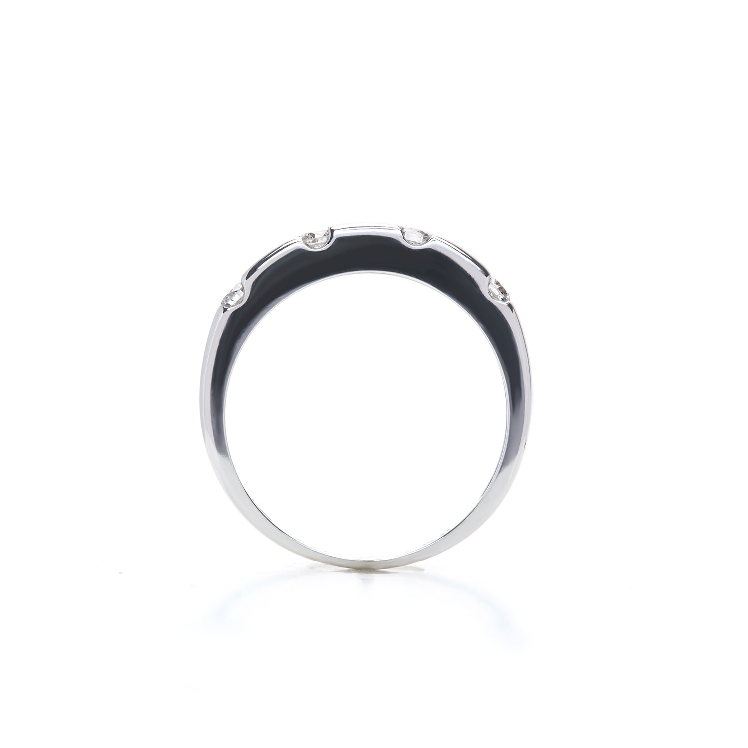 Galilean are the four largest moons of jupiter. Stack this ring beside a large diamond and you'll feel like you're in orbit. Wear it as a stand alone piece and these 4 diamonds are sure to shine bright. Set in 10k white gold