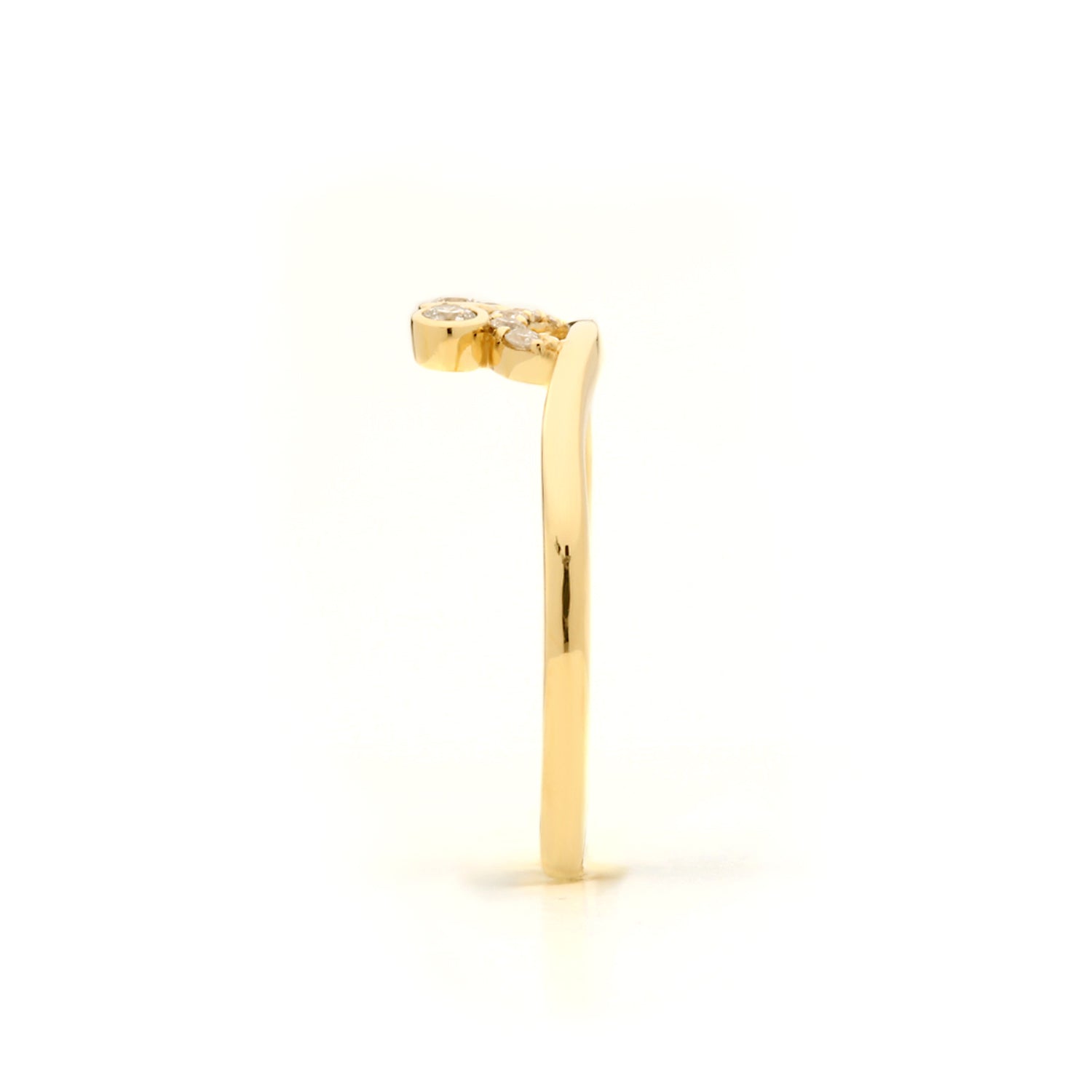 Drawn from inspiration of the spring fern fonds. The diamond curls are set in yellow gold bezels, the stem with pavé set diamonds. This free form shape will feel like you have an elegant piece of nature on your finger.