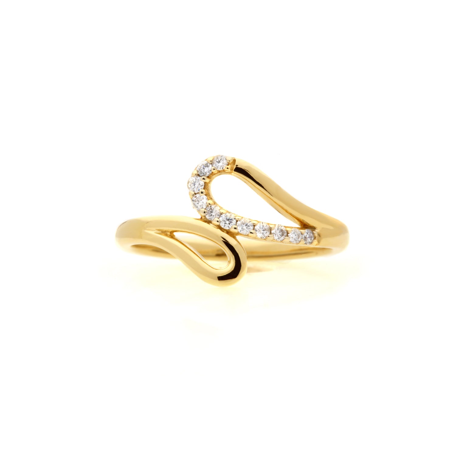 This ring is full of emotion with two adjoining tear drop loops. One in solid 10k yellow gold and the other claw set with 11 diamonds. Wear this as a standalone piece for any occasion.