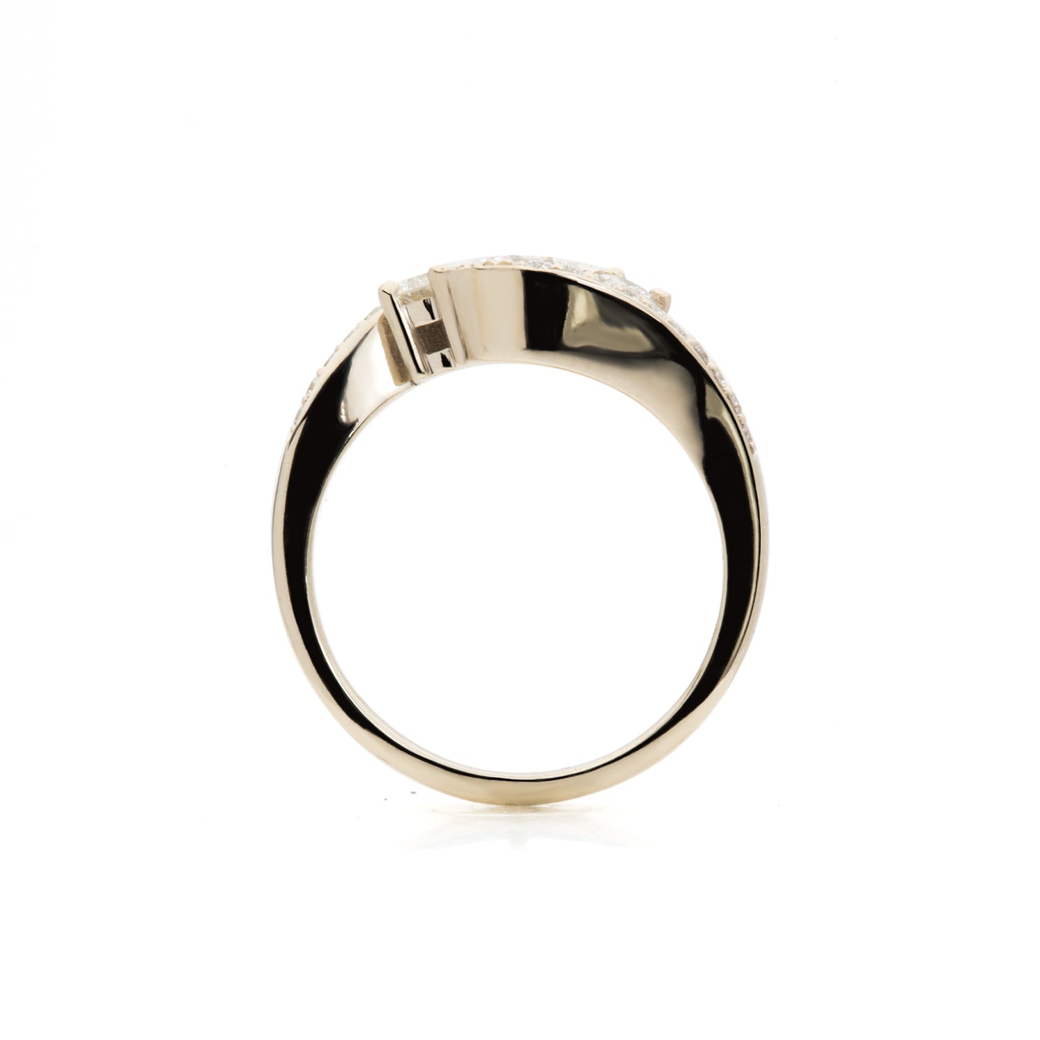 Lady's 15 karat white gold cross over engagement ring set with 23 diamonds.