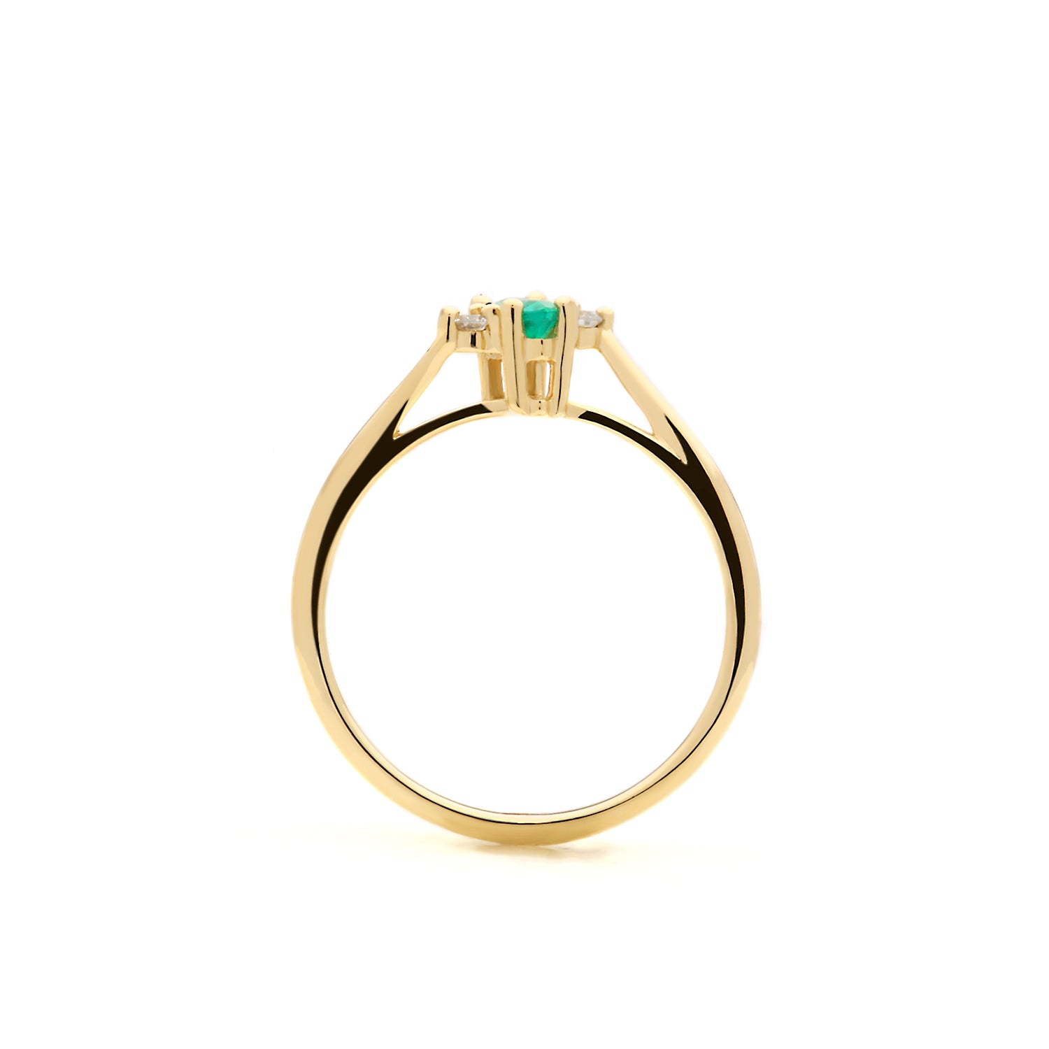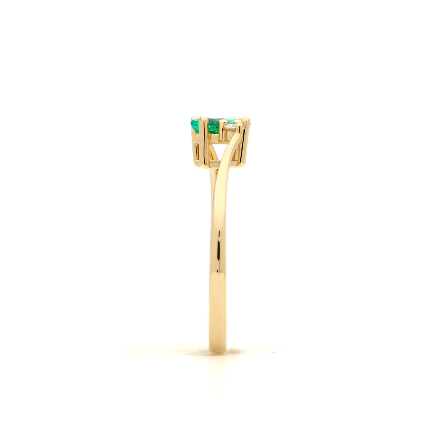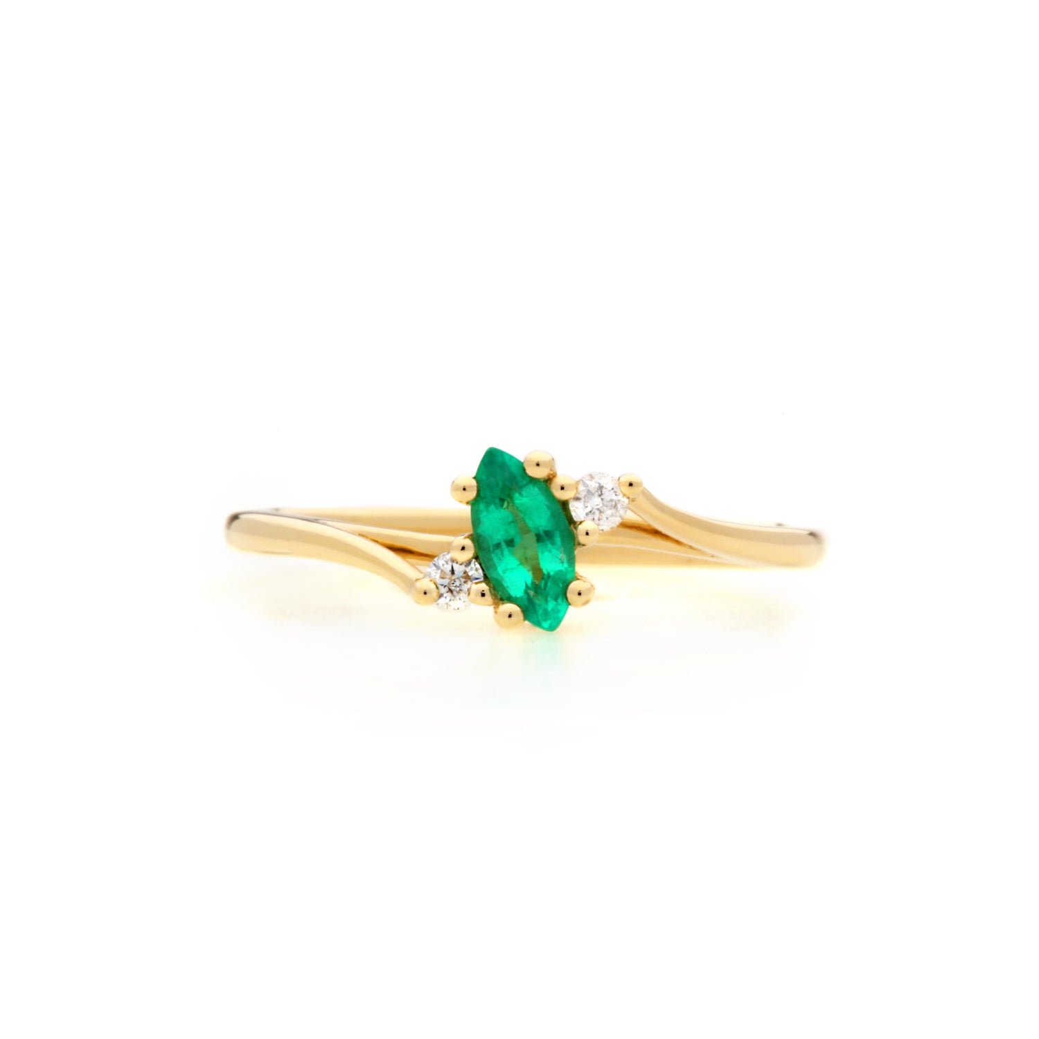 Lady's 14 Karat Yellow gold, Emerald, Diamond Contemporary Fashion Ring 1X0.30 marquise cut emerald and two 0.03 carat round brilliant diamonds. SI G-I