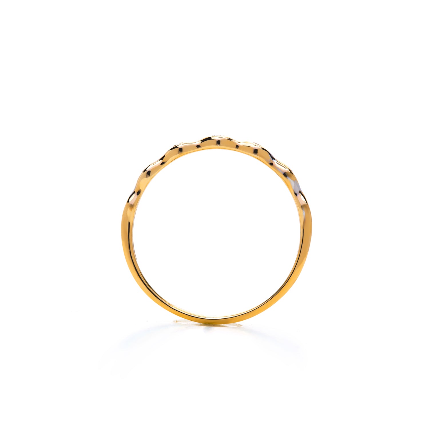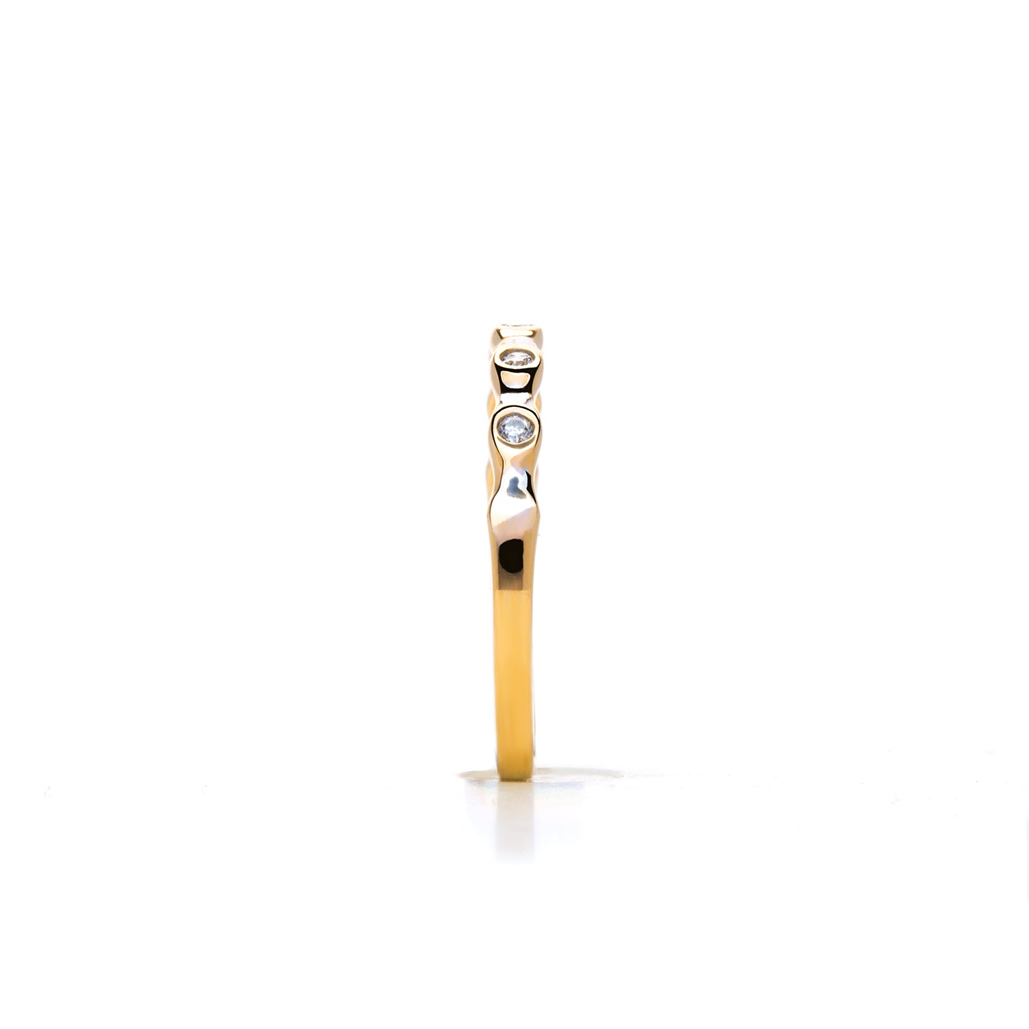 Jaylyn Wavy band has flow. Round gypsy set diamonds in 10k yellow gold.