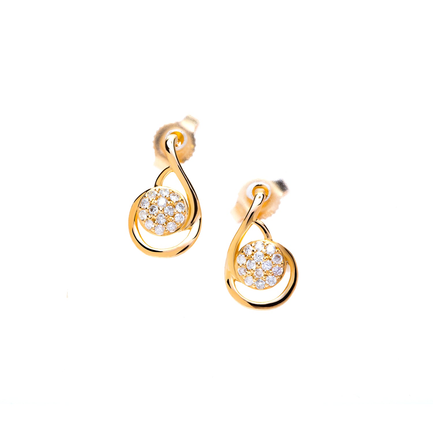 14 karat yellow gold earrings set with twenty eight diamonds.