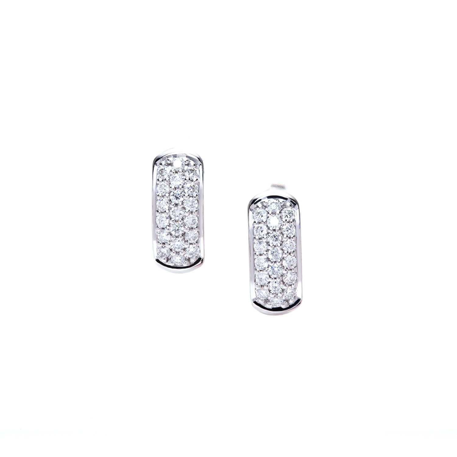 14 karat white gold earrings set with 38 diamonds.