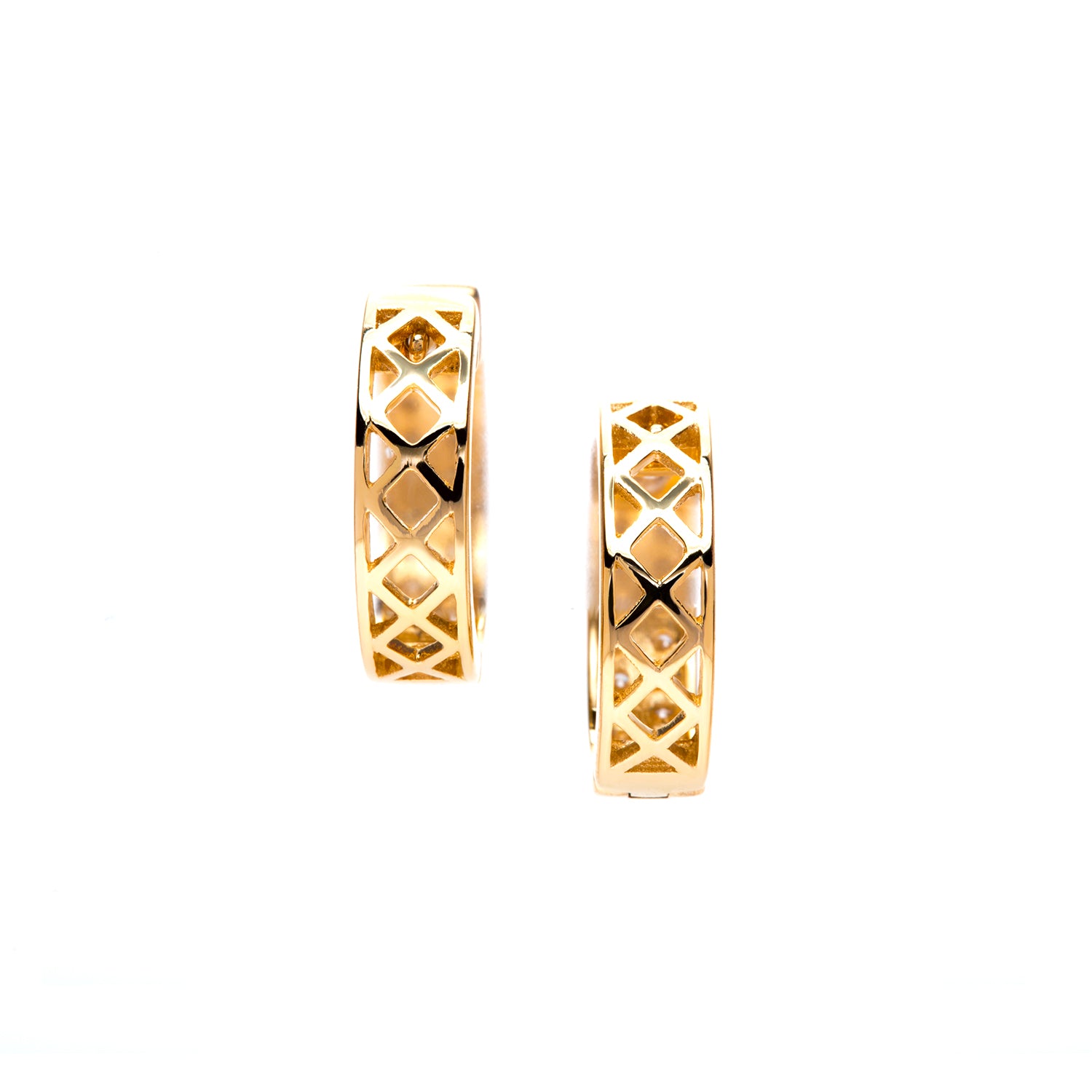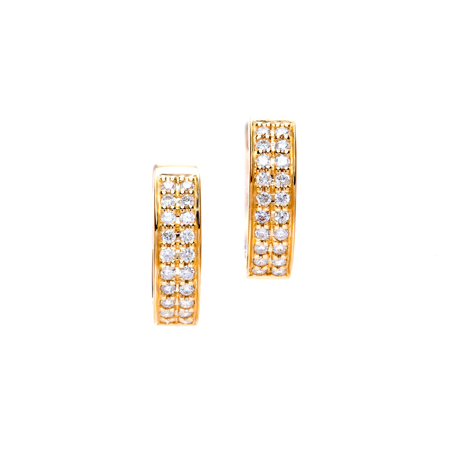 14 karat yellow gold pierced earrings set with forty diamonds.