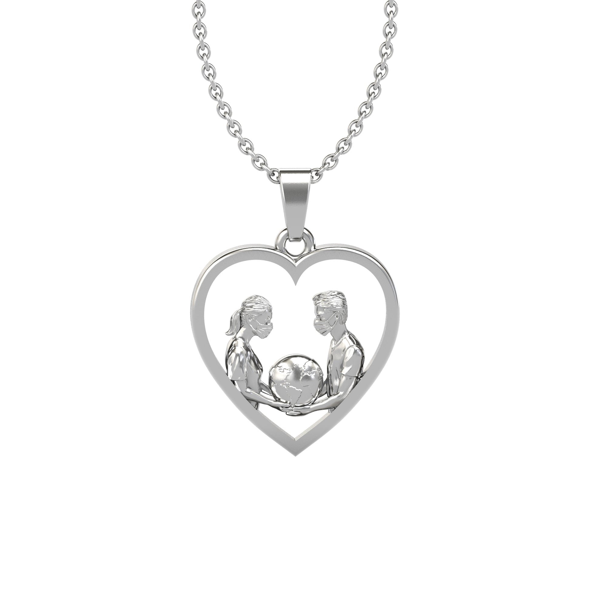 Sterling Silver Tribute Pendant displaying workers holding the world in their hands within an open heart. An ideal gift for the individuals dedicated to supporting their communities.