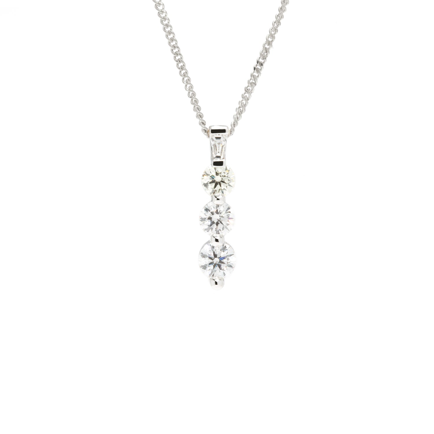 Lady's White 14 Karat Drop Pendant set with three diamonds.