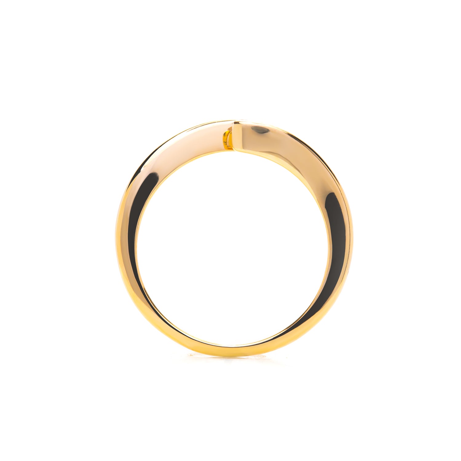 The solitaire ring is an ultra minimalist design. A .10ct brilliant round cut diamond is set in a bezel 14k yellow gold in a way that the diamond looks like it's free floating between each side of the setting. Look for Elpis 1 or 2 in different colour gold.