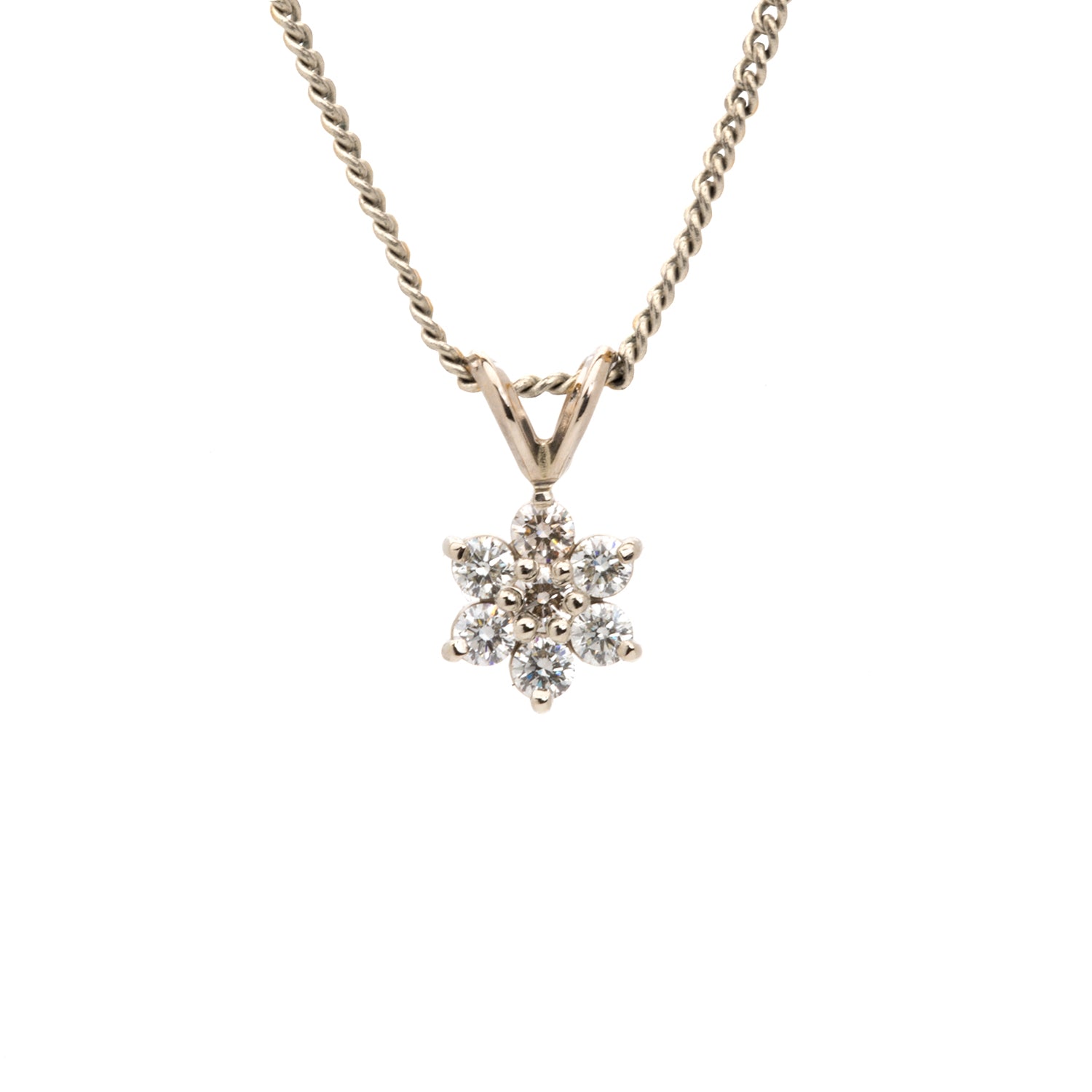 Lady's 14 karat white gold cluster pendant set with seven diamonds.